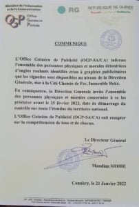 Infochrono.org vous propose le communiqué de l’office guinéen de publicité (OGP).