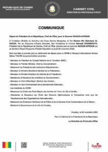Le président de la transition de Guinée, le colonel Mamadi Doumbouya se rendra à Riyad en Arabie saoudite ce jeudi 09 novembre 2023.