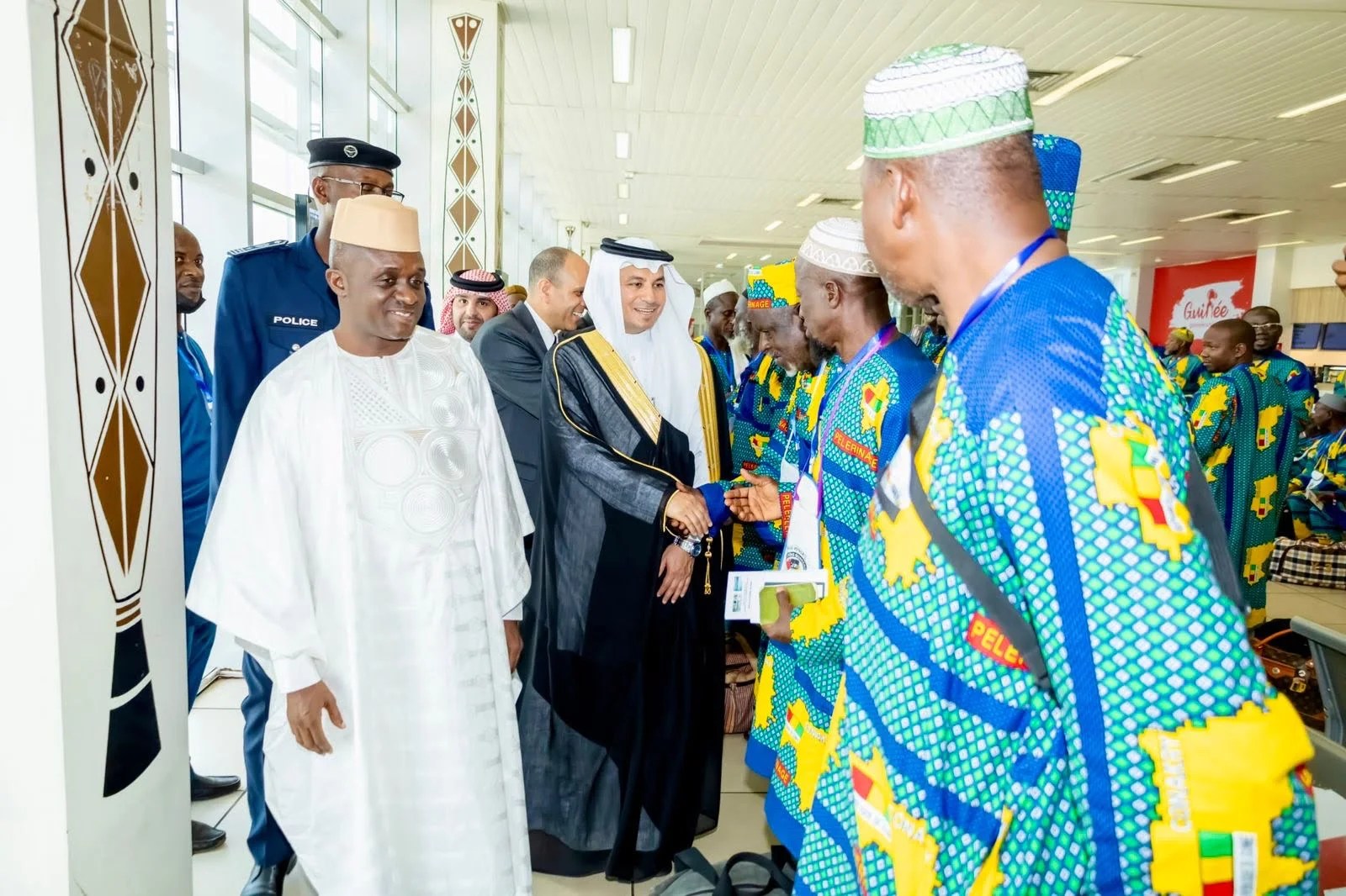 L’ Ambassadeur du Royaume d’Arabie Saoudite en République de Guinée, Son Excellence Dr. Fahad Eid ALRSHIDY, a pris part à la cérémonie de départ du premier convoi des pélerins guinéens à l’Aéroport international AST de Conakry, en présence du Ministre des Affaires Étrangères Son Excellence Dr. Morissanda KOUYATÉ, du Ministre Secrétaire Général des Affaires Religieuses Elhadj Karamo DIAWARA, et de plusieurs responsables, d’ambassadeurs et des médias.